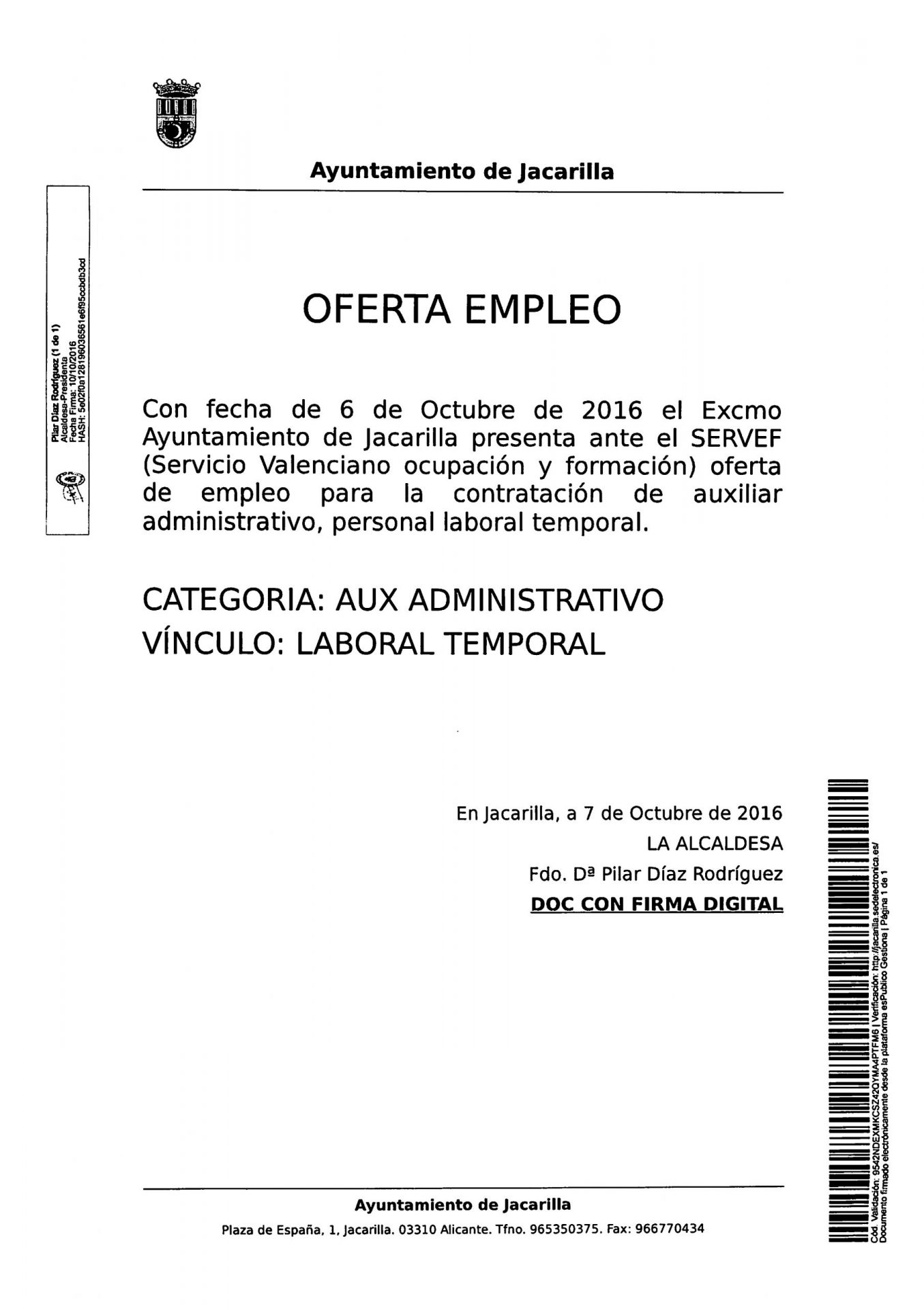 EDICTO OFERTA DE EMPLEO DE AUX. ADMINISTRATIVO