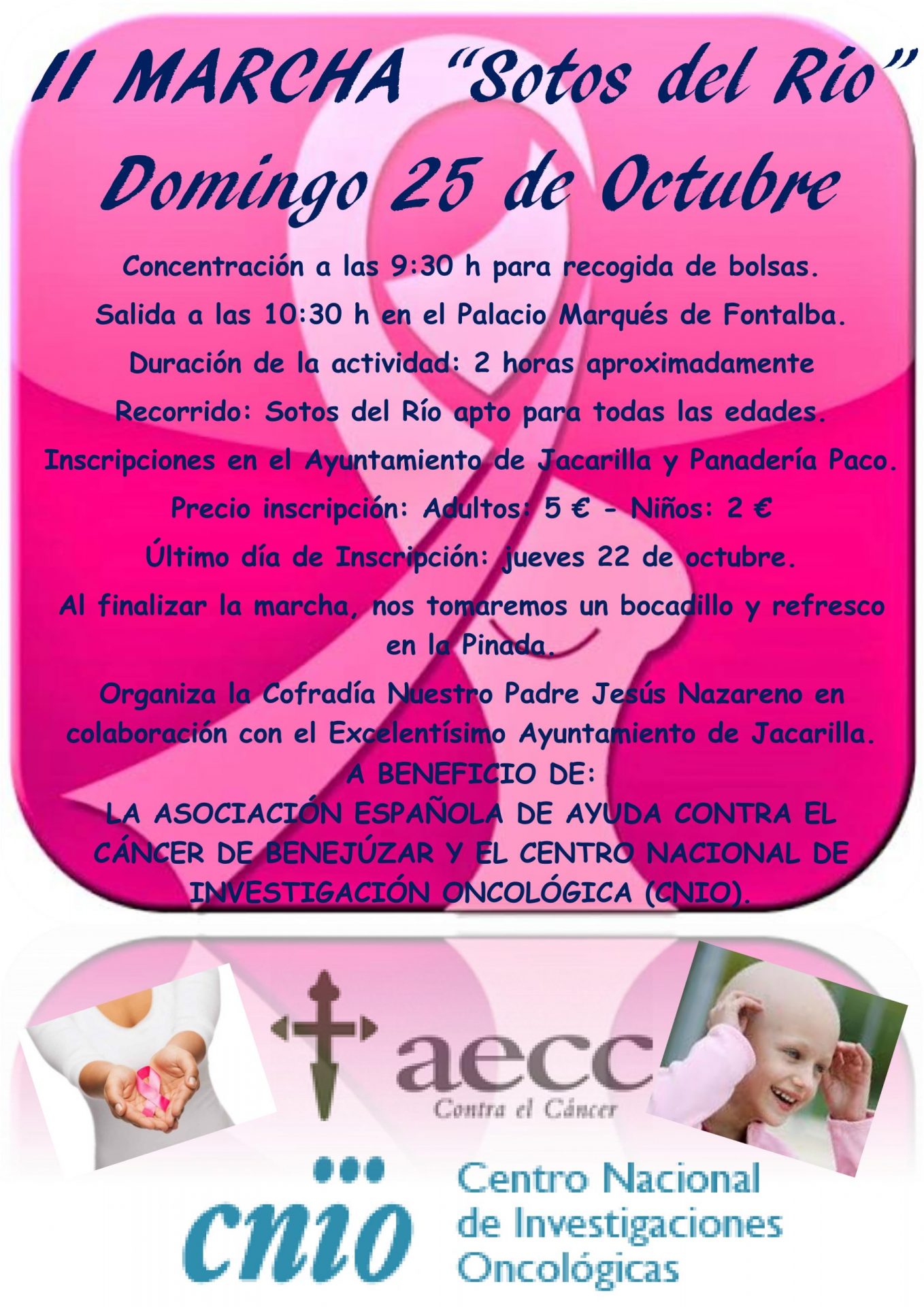 A BENEFICIO DE: LA ASOCIACIÓN ESPAÑOLA DE AYUDA CONTRA EL CÁNCER DE BENEJÚZAR Y EL CENTRO NACIONAL DE INVESTIGACIÓN ONCOLÓGICA (CNIO).