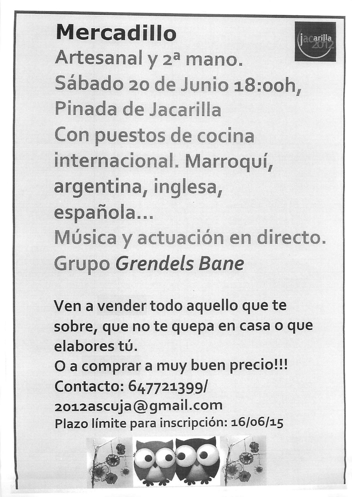 El próximo 20 de junio a las 18.00 horas en Pinada del Palacio celebraremos Mercadillo Artesanal y de 2ª Mano. Os esperamos.