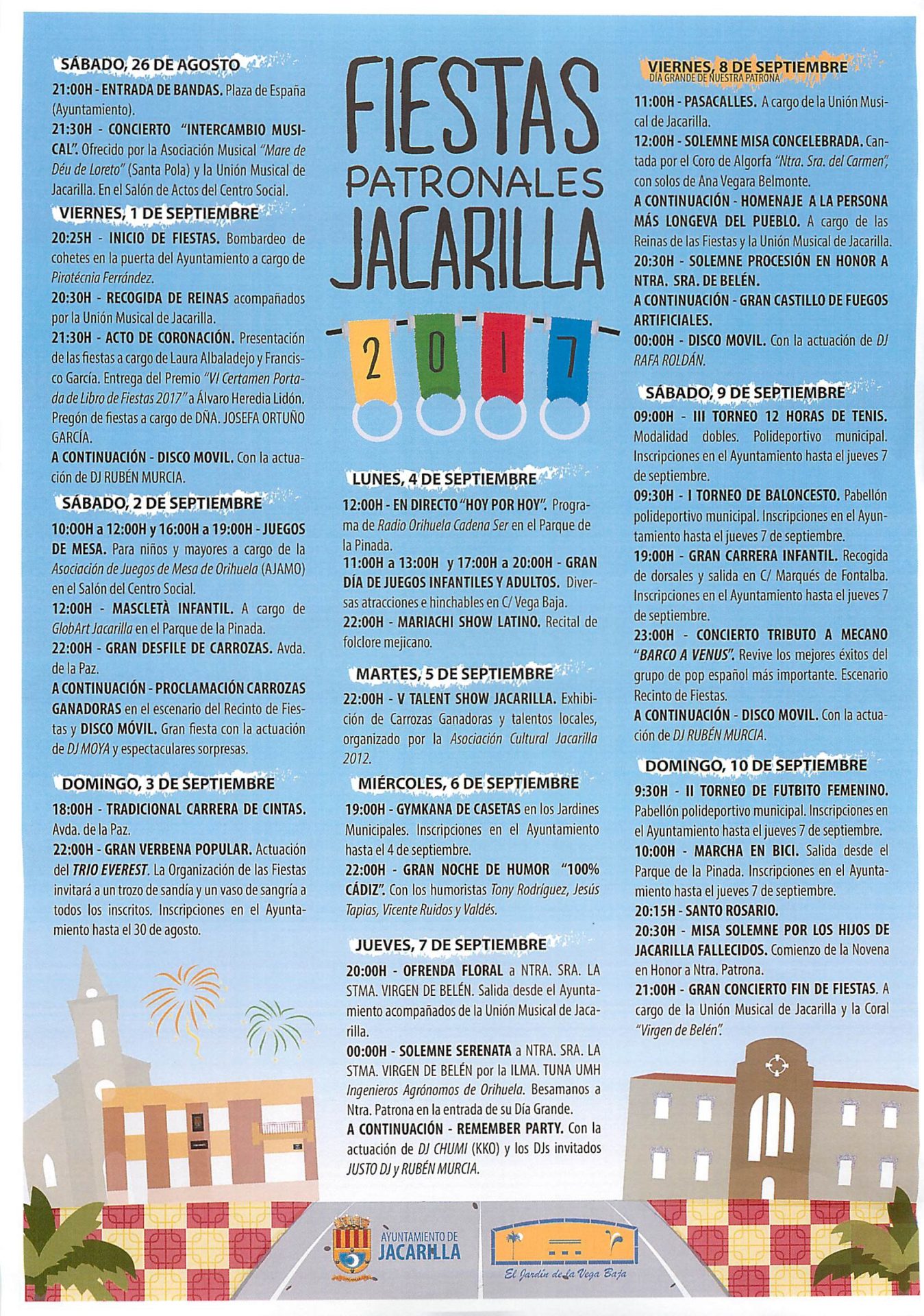 PROGRAMA DE ACTOS “FIESTAS PATRONALES JACARILLA 2017”