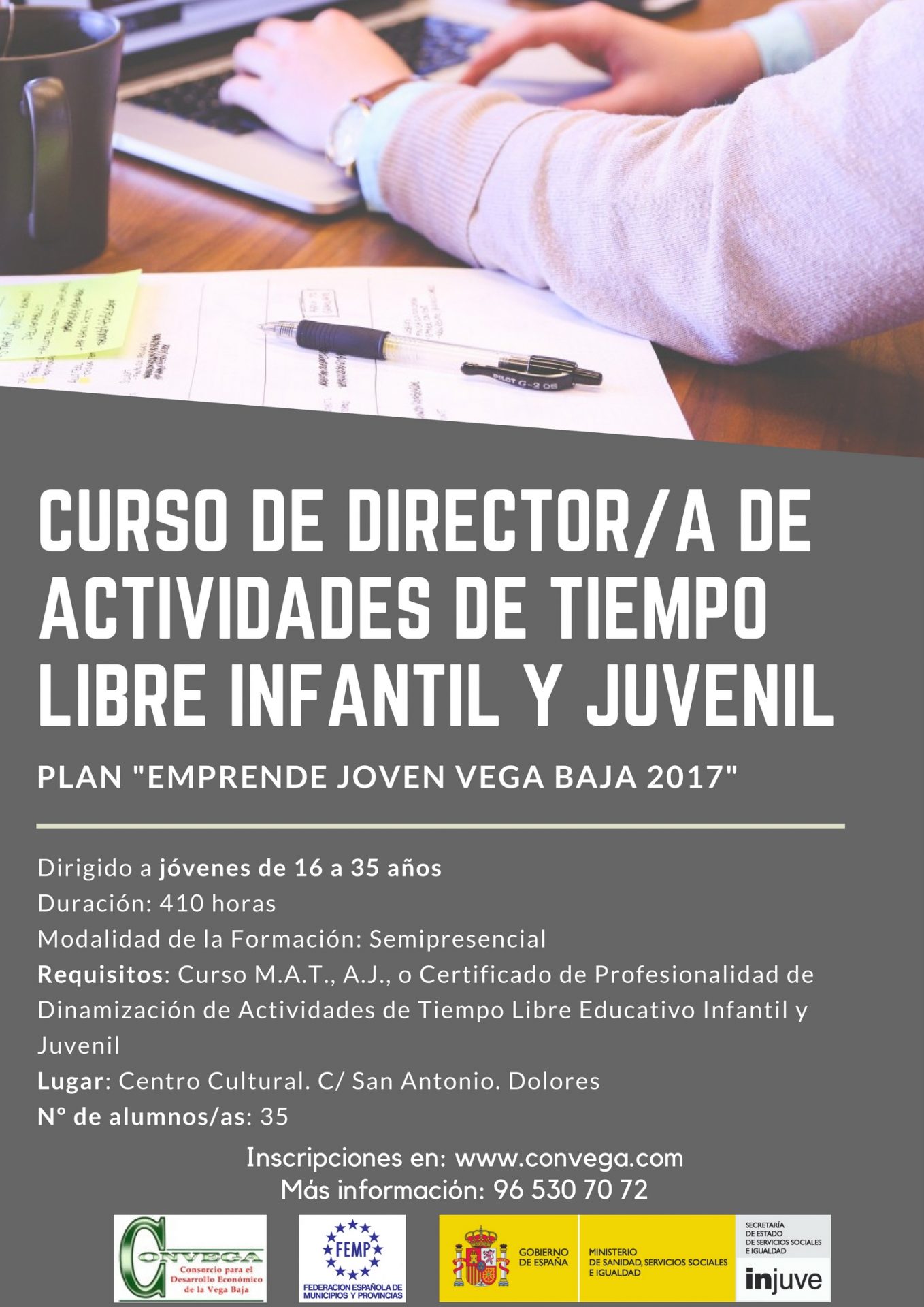 CURSO DE “DIRECTOR/A DE ACTIVIDADES DE TIEMPO LIBRE INFANTIL Y JUVENIL” DENTRO DEL PLAN “EMPRENDE JOVEN VEGA BAJA 2017”