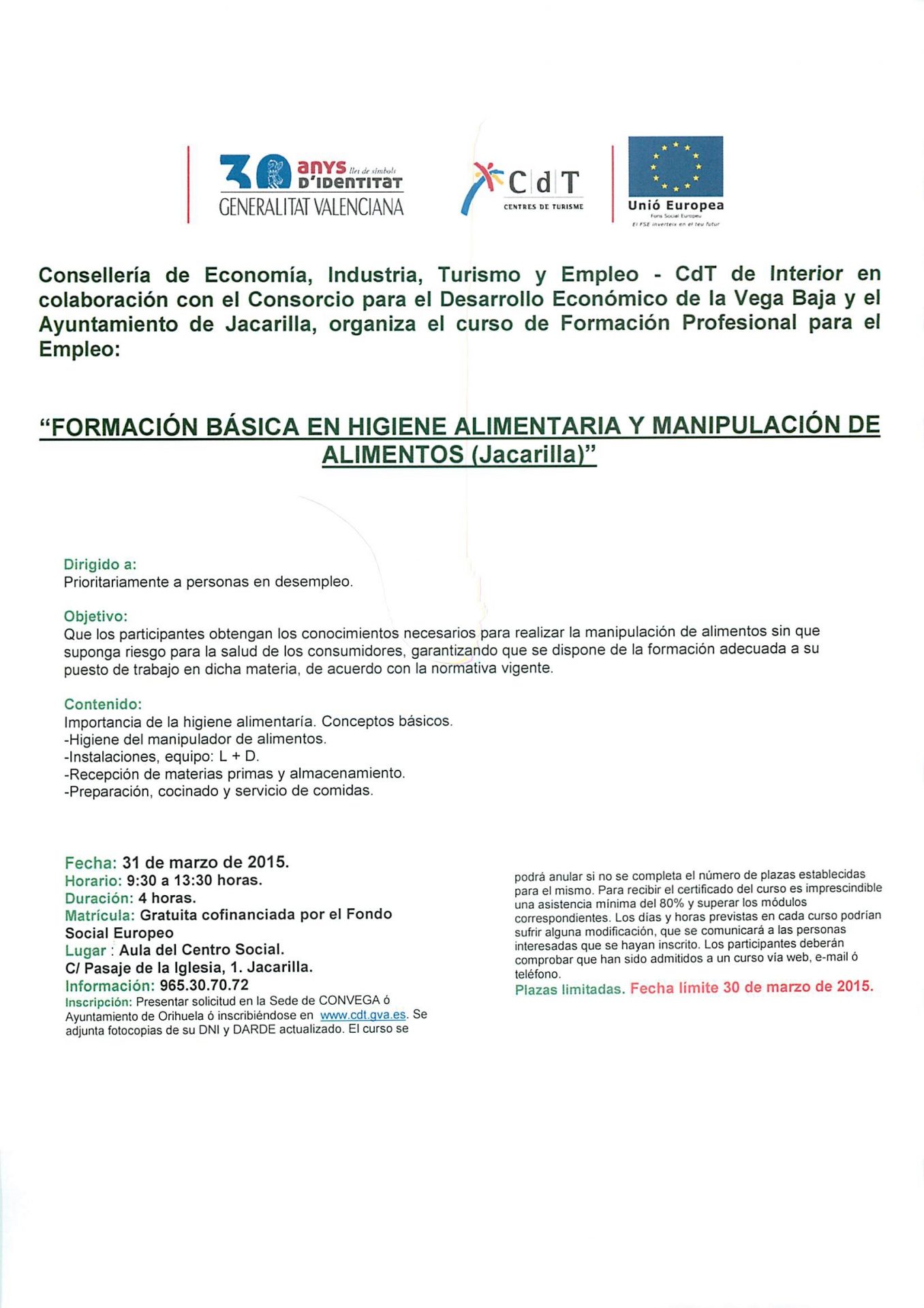 Plazo máximo de inscripción hasta el 30 de marzo de 2015.